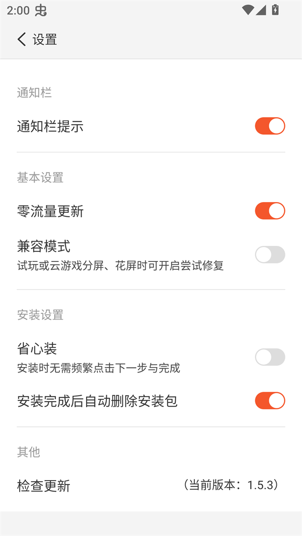 3、然后你可以点击个人主页右上角的设置功能,从而开启“通知栏提示”、“零流量更新”、“兼容模式”等设置。