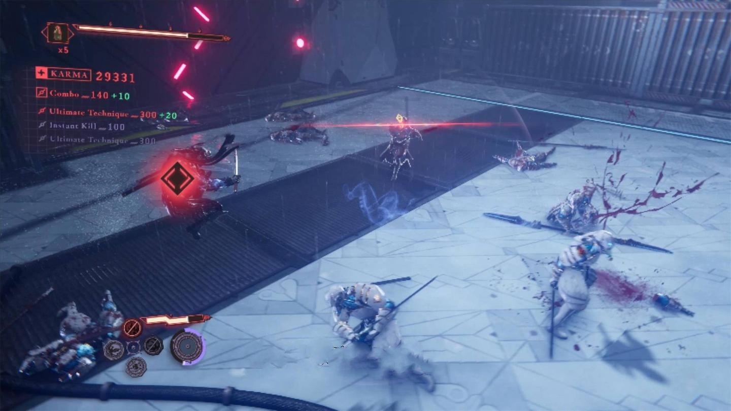 虽然忍者龙剑传4中的“血楔”非常强大的,但这一代游戏的硬核设定并没有丢,也就是说玩家如果操作不过关、对无不够熟练,那么即便转换武器也无法让你变得更强。不过本来作品支持自定义难度,玩家如果想爽玩的直接调到最低难度,就可以交织出利落又自由的战斗,轻松体验无敌的寂寞了。