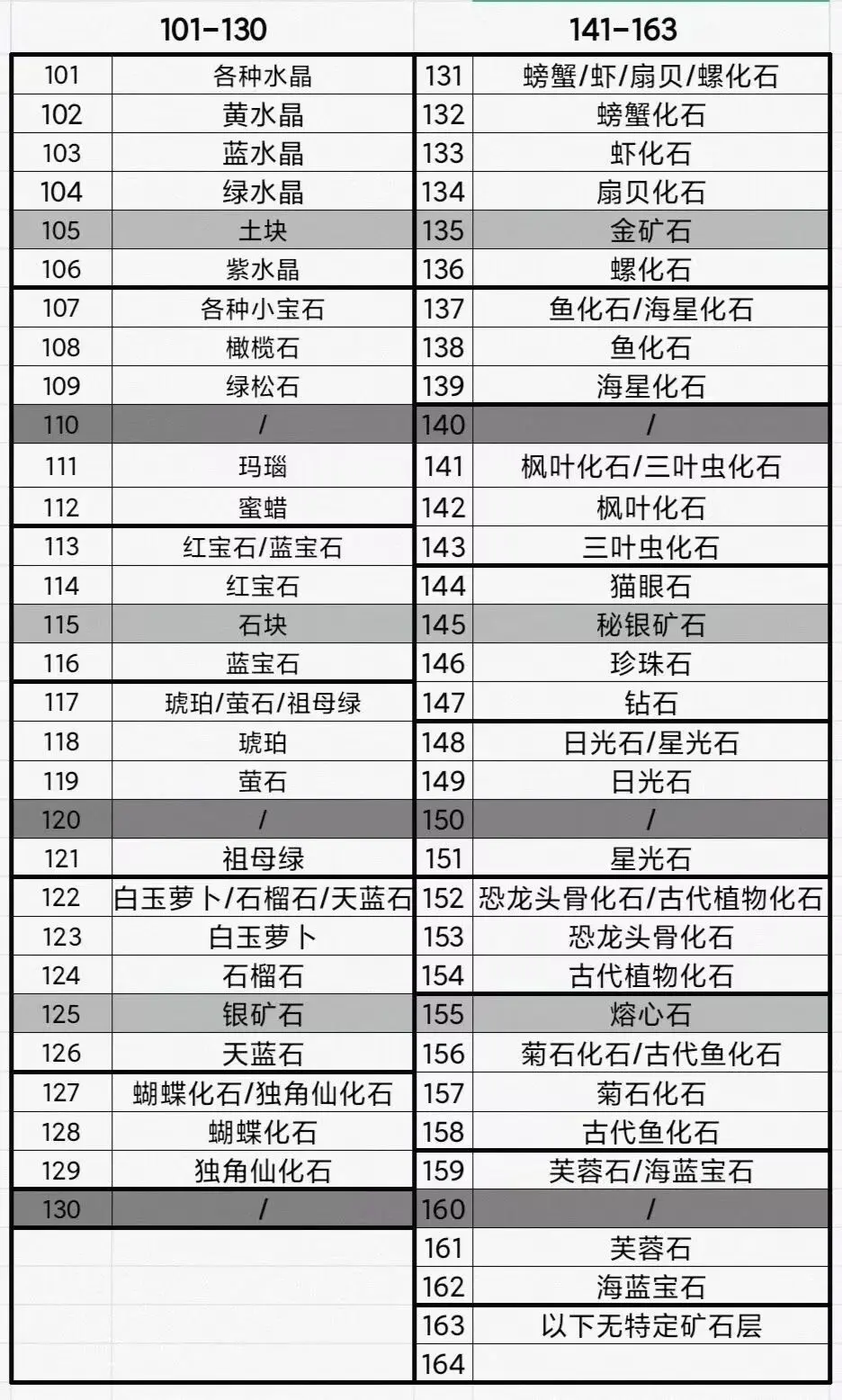 *水晶/小宝石*(6层+)、*大宝石/化石*(30层+)。