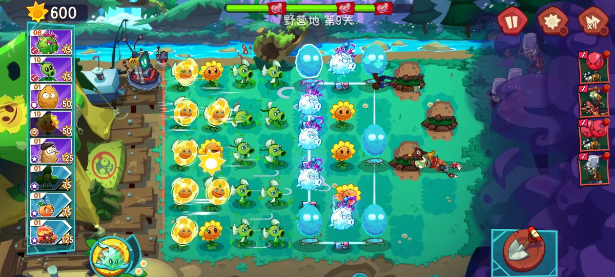 战斗中自由拖动植物调整阵型,实时应对危机;