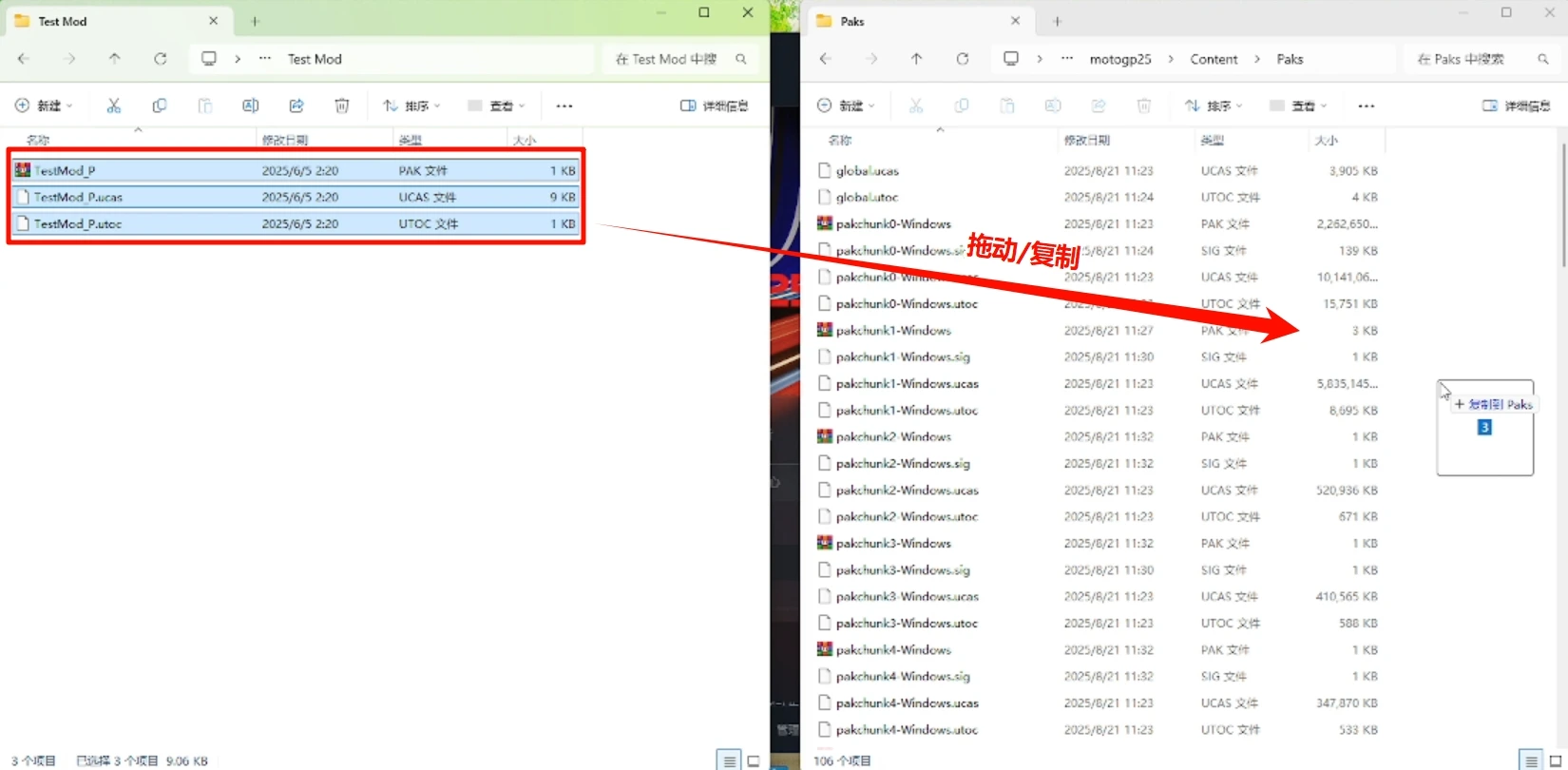 在网站(www.modfans.cc)下载喜欢的MOD,并且使用WinRAR解压,获得MOD文件。将文件复制到邮件安装文件夹中的Paks文件夹内,可以按照以下方法打开pasks文件夹- Steam中-库-找到游戏-右键-管理-浏览本地文件- Epic中-库-找到游戏-右键-管理,在弹出窗口找到安装这一行,在卸载旁边有个文件夹图标,点击图标点击后打开文件夹,在打开的文件夹中继续打开…\motogp25\Content\Paks