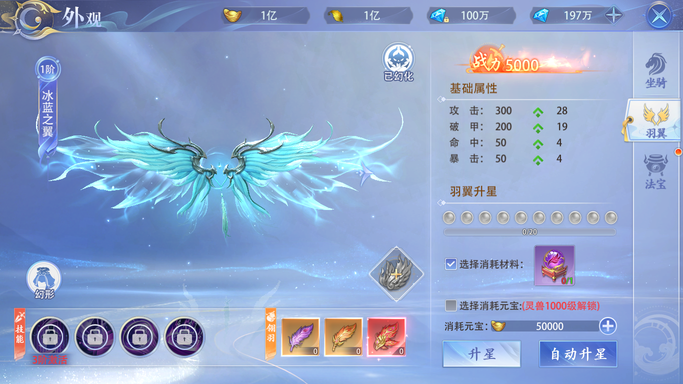 羽翼可通过收集幻化形象大幅度的提升属性值。幻化形象及外观可以通过运营活动获得。