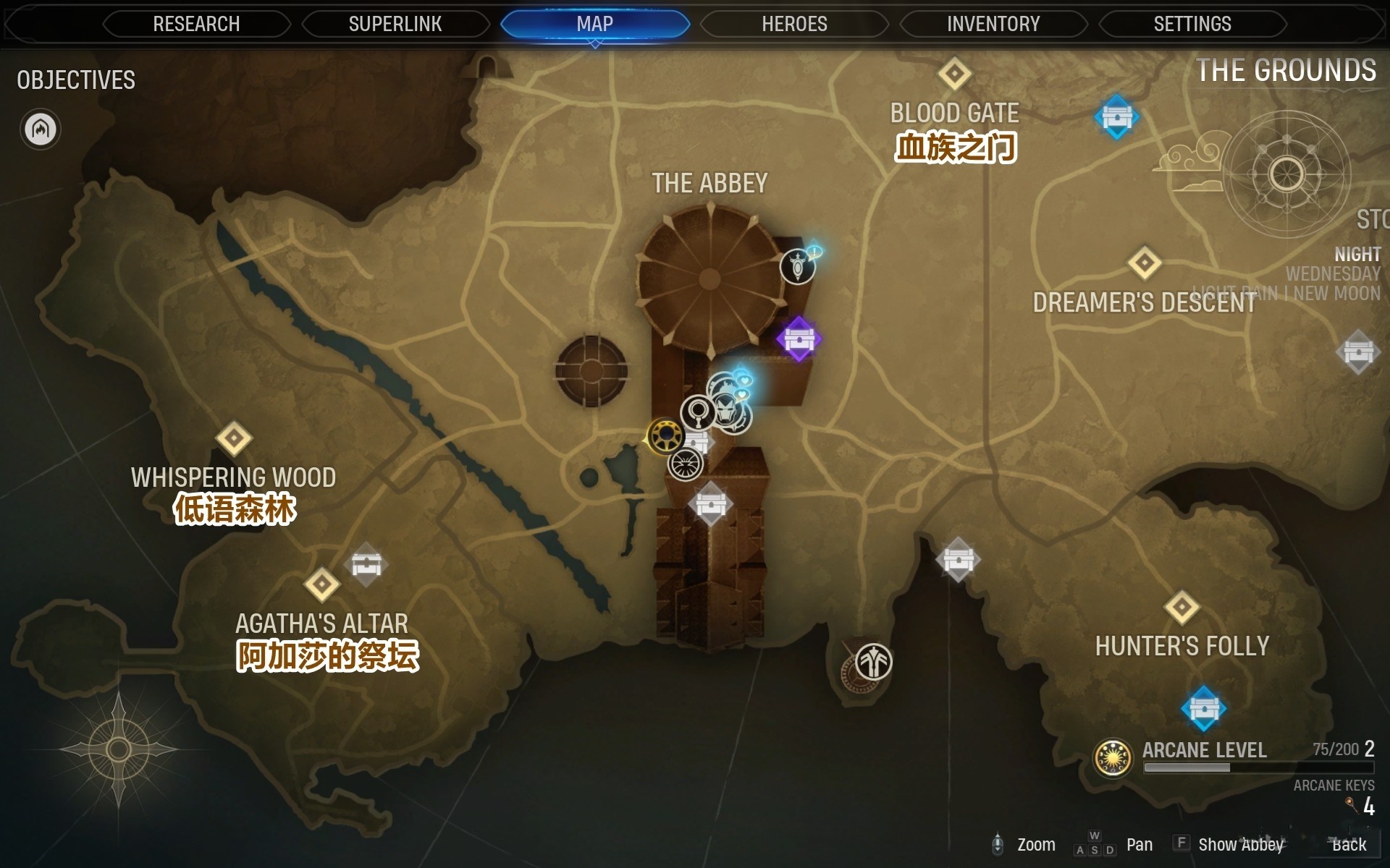 空元素棒:在图书馆遇到阿加莎后,跟随她前往祭坛并进入旁边的低语森林即可找到。