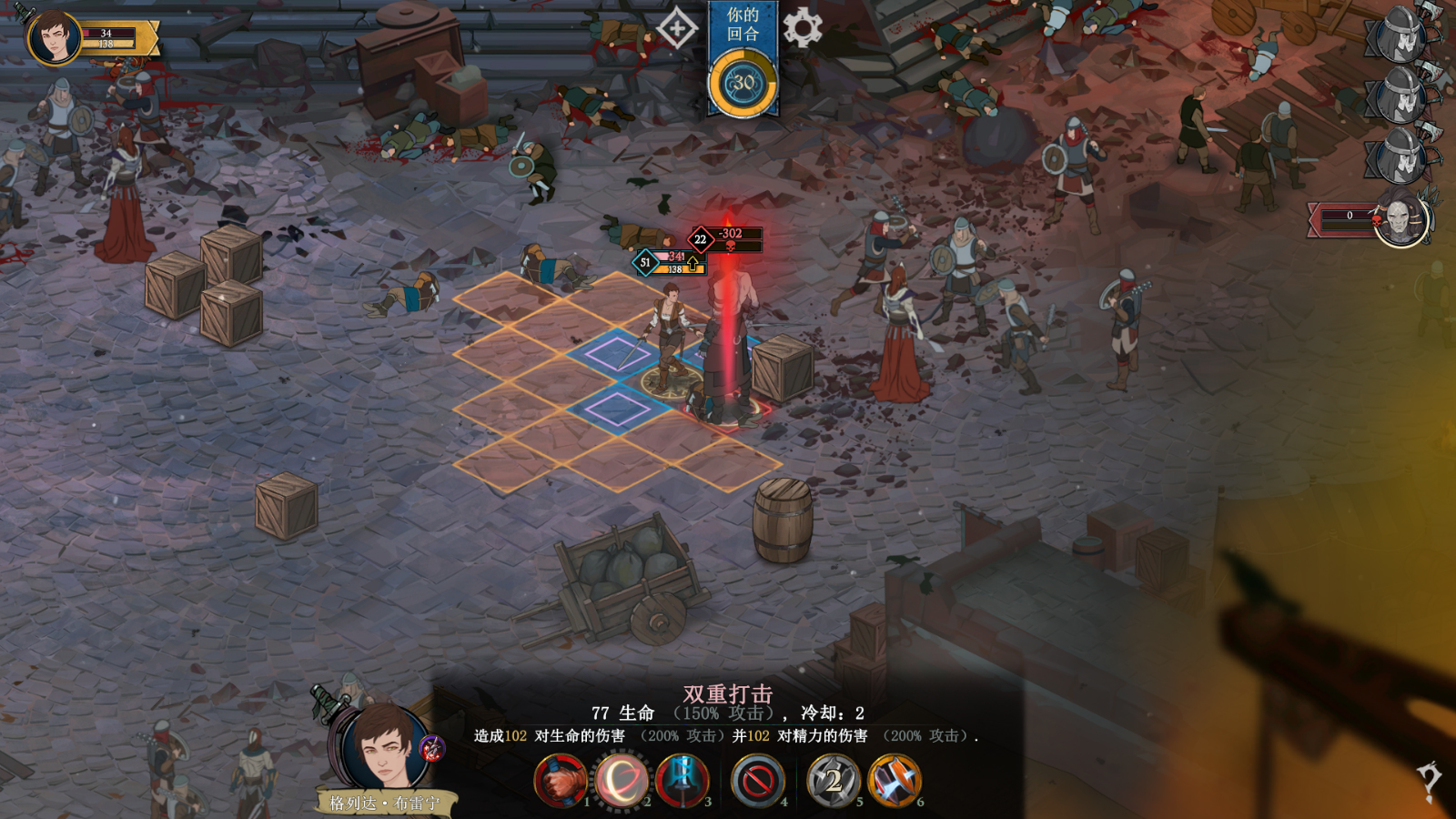 游戏中没有命中率或者伤害浮动的设定。在《Ash of Gods》中,玩家必须合理利用每一个职业的每一个技能,合理计算并使用有限的卡牌,否则就要自食苦果。