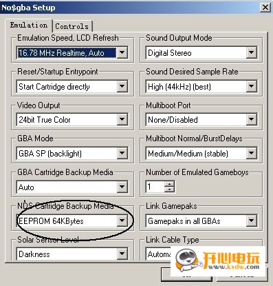 一般来说选择 EEPRO 64KBytes 就可以进很多游戏了,但有的还是要变其他类型,具体大家因游戏而定 。3按键的设置,按F11进入设置画面点Controls定好了后,点OK就可以了