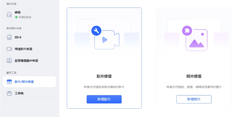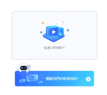 点击「点选以新增影片」以汇入损毁或受损的影片,然后点击「修复」以开始修复它们。