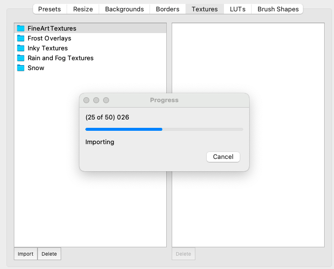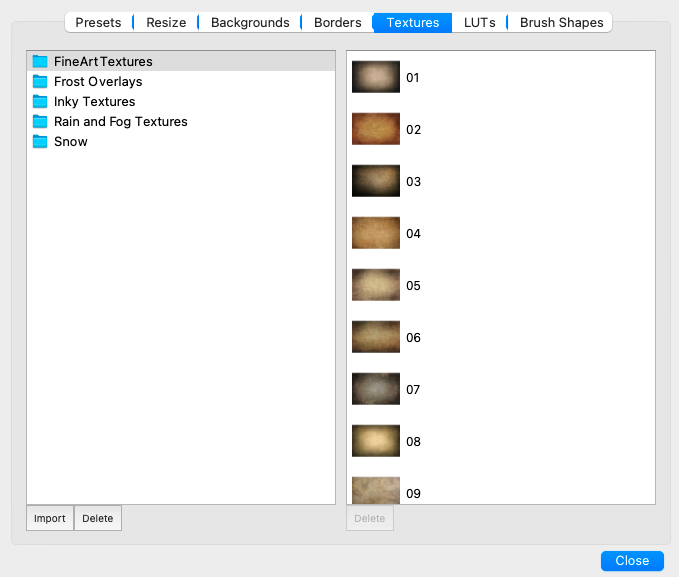 7. 导入纹理文件后,您可以单击“关闭”按钮。