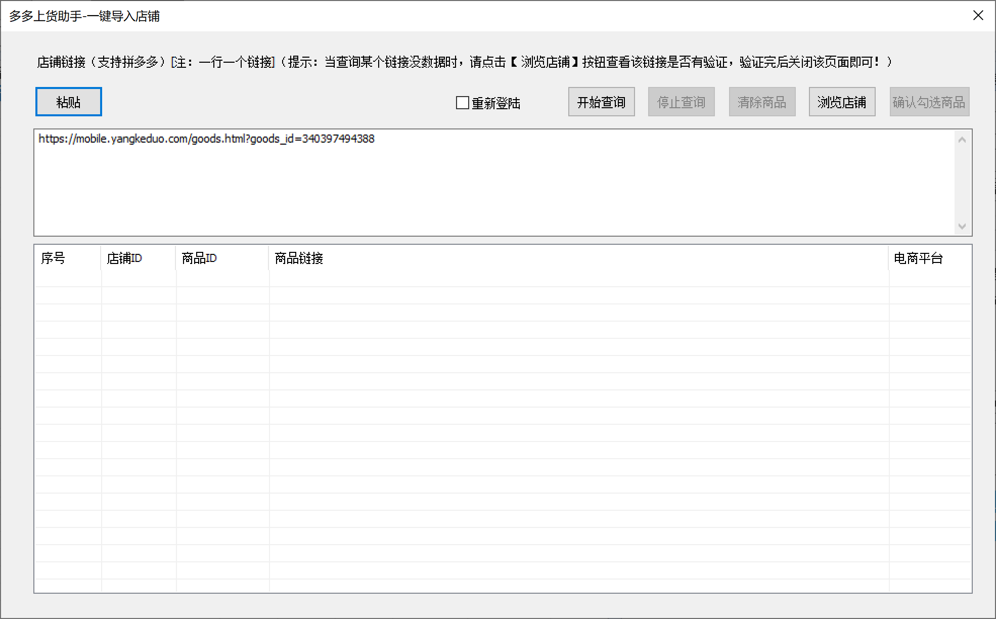 3、整店抓取:拼多多店铺整店抓取,输入店铺链接id或该店铺的某条商品链接,就可以整店抓取了。如输入店铺的某个商品链接或黏贴。