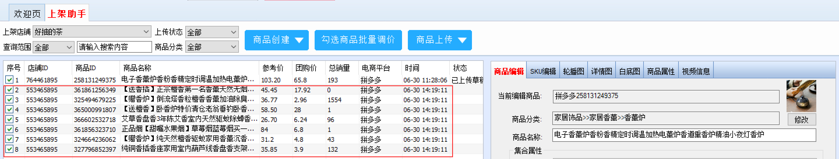 2、批量复制:批量复制商品,店铺快速搬迁;